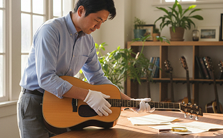 ご都合の良い日時と場所に、査定士が訪問。楽器本体と身分証明書を準備。